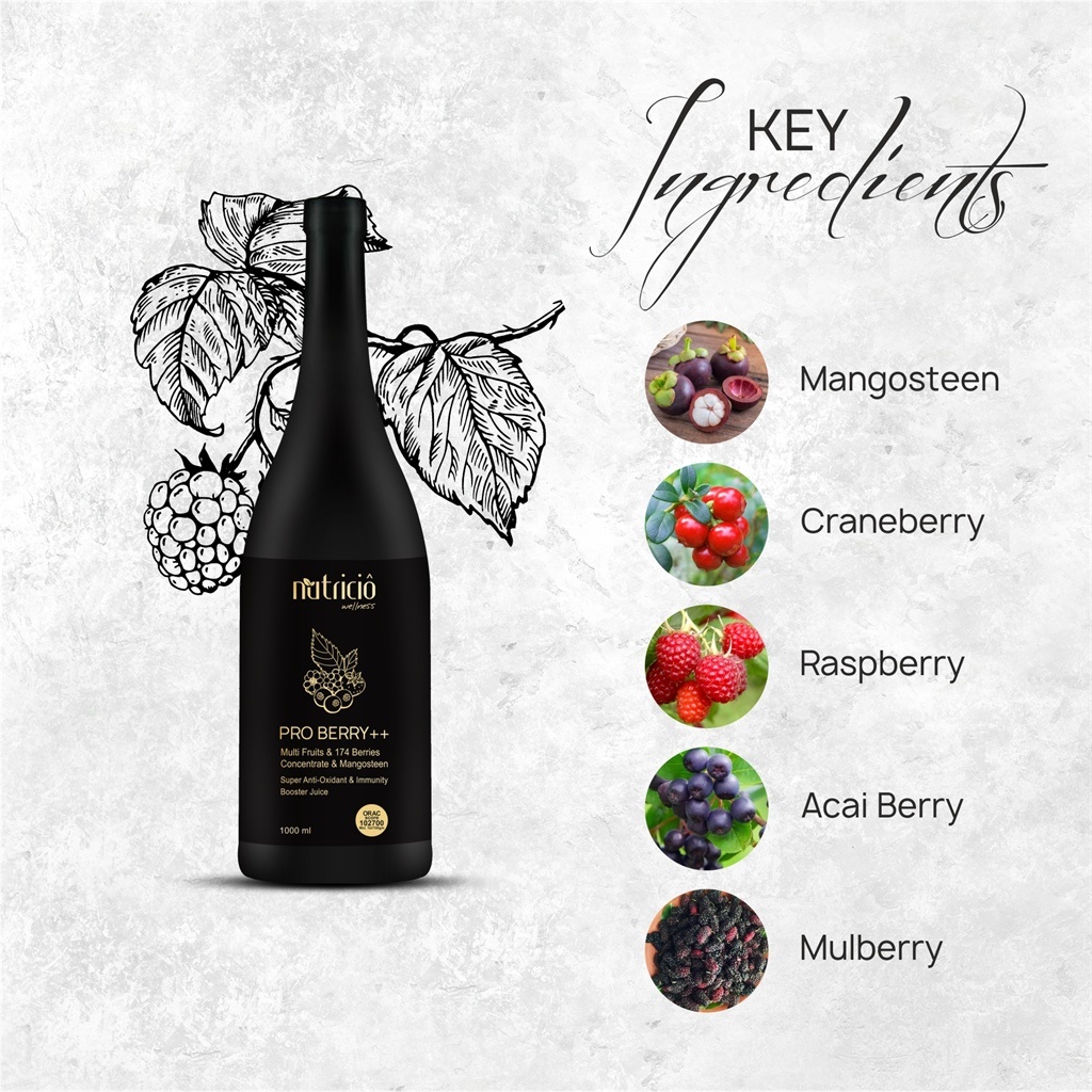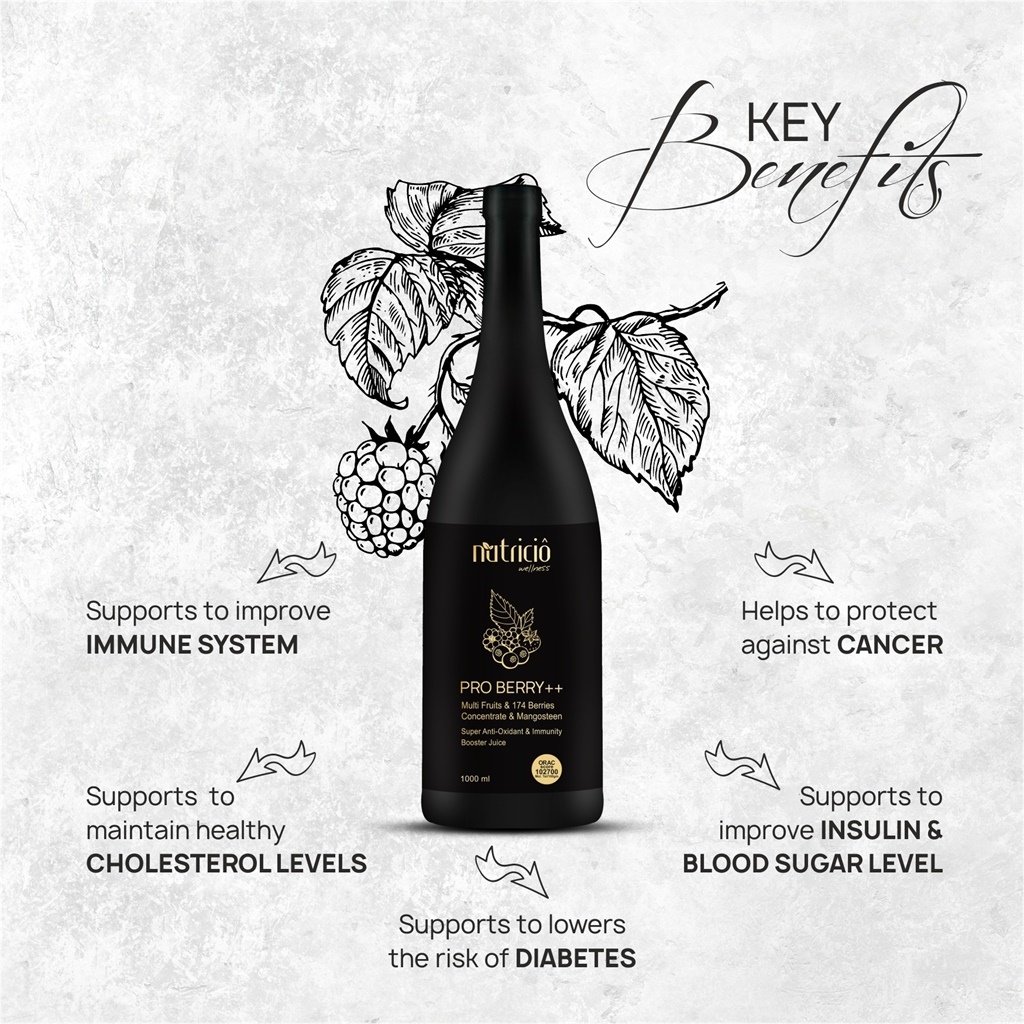 Pro Berry Plus++ is a nutraceutical consisting of 174 berries extracts which make it a strong antioxidant formula due to anthocyanins to prevent the disruption of cellular integrity and keeps the DNA molecules intact. Pro Berry Plus++ consist of a set of phenolic phytochemicals particularly anthocyanin. These dietary intakes stimulates the growth of beneficial gut bacteria like Akkermansia which inhibits fat storage, enhances Insulin sensitivity and provides our immune system anti-inflammatory responses. It’s high in fiber, loaded with antioxidants, provides many nutrients and also good for skin.