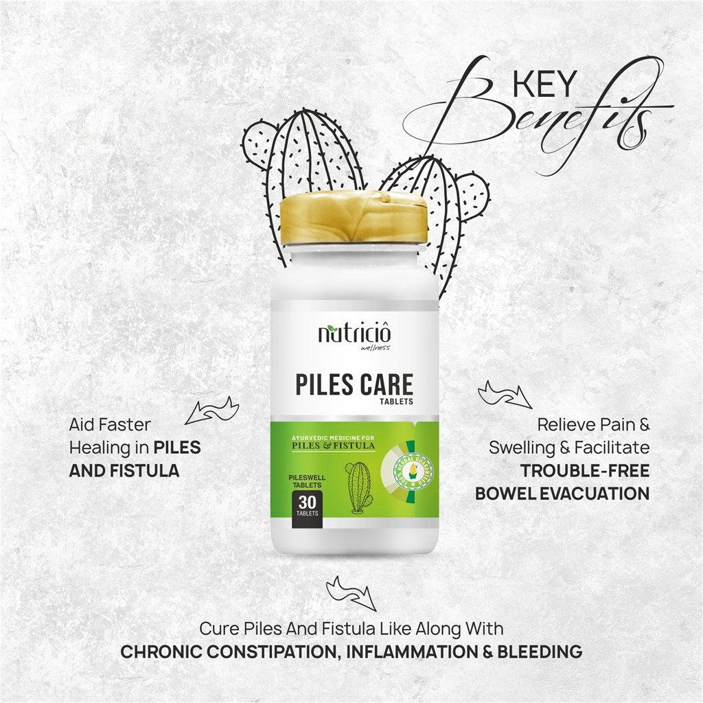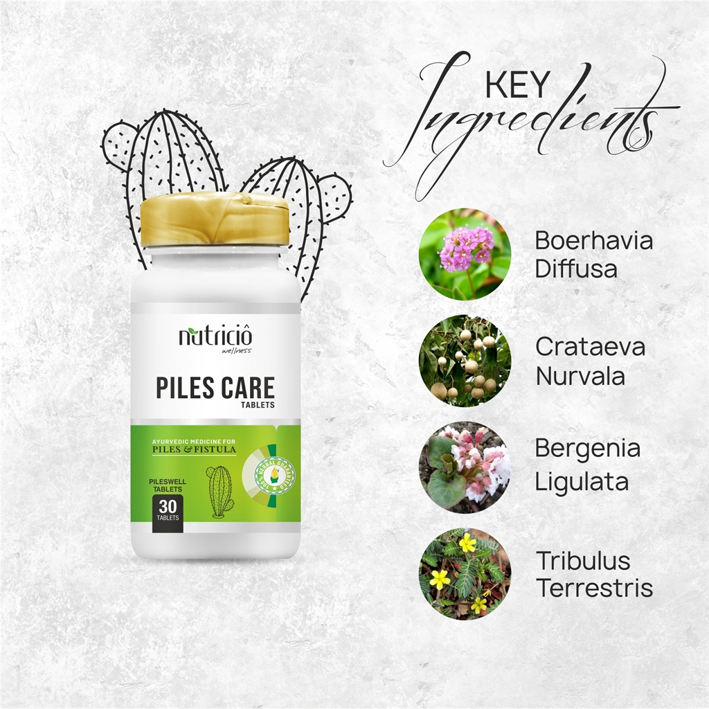 Piles is a growing problem because of dietary & lifestyle factors. Piles or hemorrhoids develops around the anus, involving swelling or inflammation of the veins, within or just outside the anus. The condition causes severe pain and irritation, making it difficult to even sit down. The incidence of this condition has risen dramatically in India because of our changing lifestyle and diet. Nutricio Piles Care shrunken your piles and relieves discomfort. It soothes your itching and reduces inflammation. Give yourself or your relatives freedom from the problem of piles by taking this piles care tablets infused with herbal ingredients.