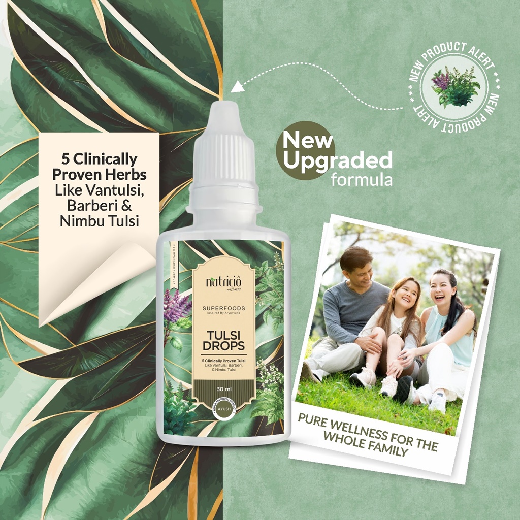 Experience the power of Ayurveda with Nutricio Tulsi Drops, a potent blend of 5 clinically proven Tulsi varieties – including Vantulsi, Barberi, and Nimbu Tulsi – all packed into one convenient, easy-to-use drop. Designed for daily wellness and immunity, this upgraded formula delivers pure herbal goodness to support your entire family's health.
