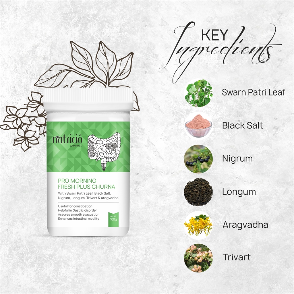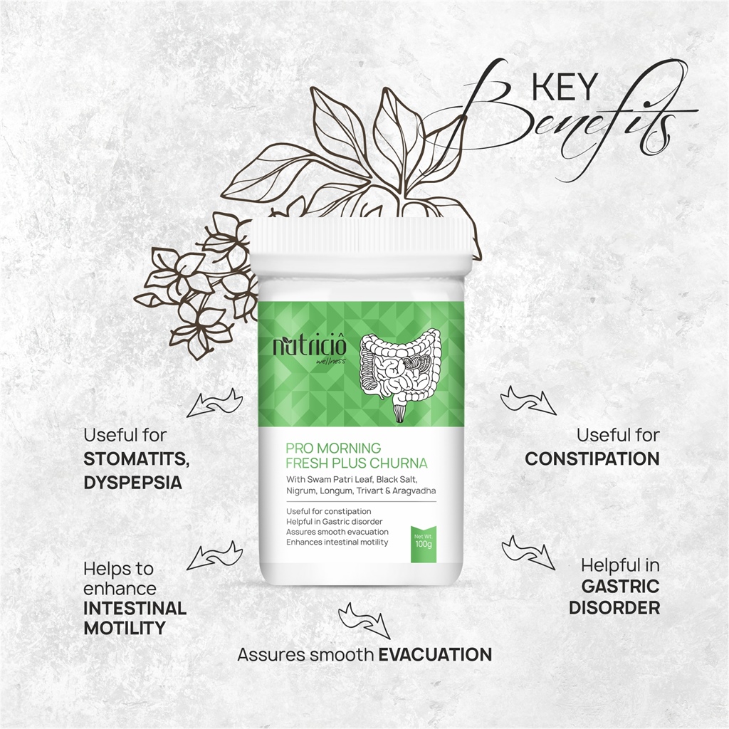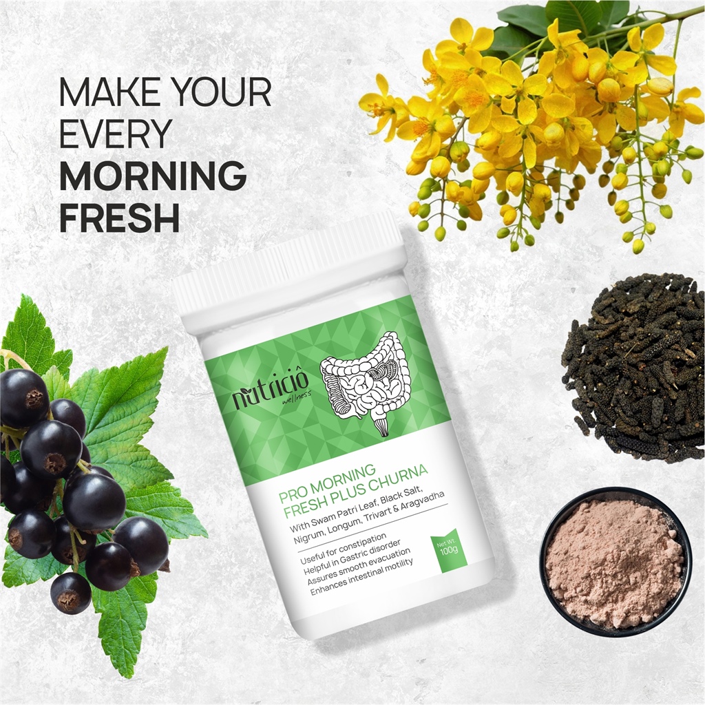 Constipation, costiveness, or irregularity, is a condition of the digestive system where a person experiences hard faces that are difficult to egest. It may be extremely painful, and in severe cases (fecal impaction) lead to symptoms of bowel obstruction. In common constipation, the stool is hard, difficult, and painful to pass. Usually, there is an infrequent urge to void. Straining to pass stool may cause hemprrhoids and anal fissures, which are they painful. In later stages of constipation , the abdomen may become distended and diffusely tender and crampy, occasionally with enhanced bowel sounds.Nutricio Morning Fresh Plus Churna is an excellent ayurvedic powdered medicine for chronic and normal constipation. This is very effective in the treatment of gastric disorders mainly which includes gas problem’s constipation problems etc.