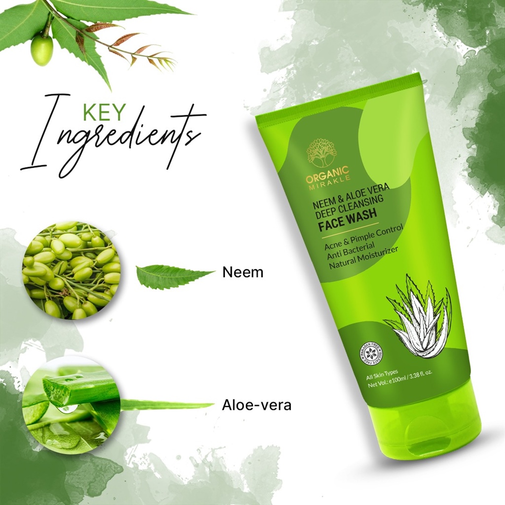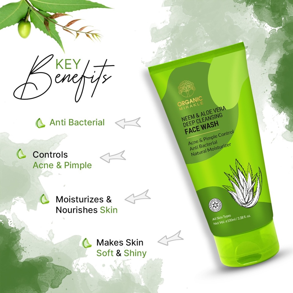 Natural Purifiying Neem & Aloe Vera Face Wash is an antiseptic face wash to ease out acne, give deep pore cleansing and freshness of newwm which is an excellent agent and aloevera is ideal against skin ailments and acts as a natural moisture maintainer leaving your skin soft & shiny.