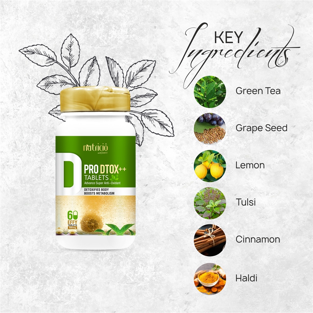 Our bodies are constantly working to expel the toxins and pollutants by poor diet, alcohol, stress and environment. Pro Dtox++ supports your digestive, circulatory and urinary systems in this function. It boosts your metabolism, immunity and relieves indigestion, bloating, abdominal ulcers and cramps. It also boosts your energy levels, helps in weight loss, supports to keel healthy heart, fights against aging and enhances your overall health.