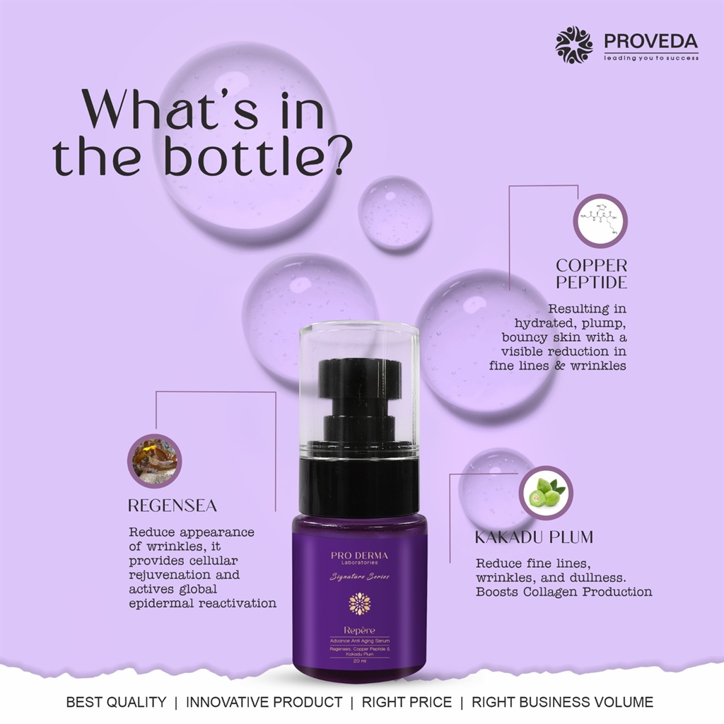 Regenerates Collagen, Rejuvenates Skin, Smoothes Signs of aging, Reduces Dark Spots, and Restores Skin’s Bounce.