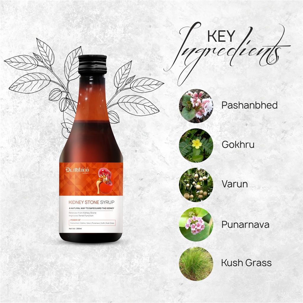 Nutricio Kidney Stone Syrup is a proprietary ayurvedic supplement. It is used in renal calculi. It is very effective for relieving kidney stones by helping them flush out. It strengthens the kidneys and helps to shield you from urinary tract infections.