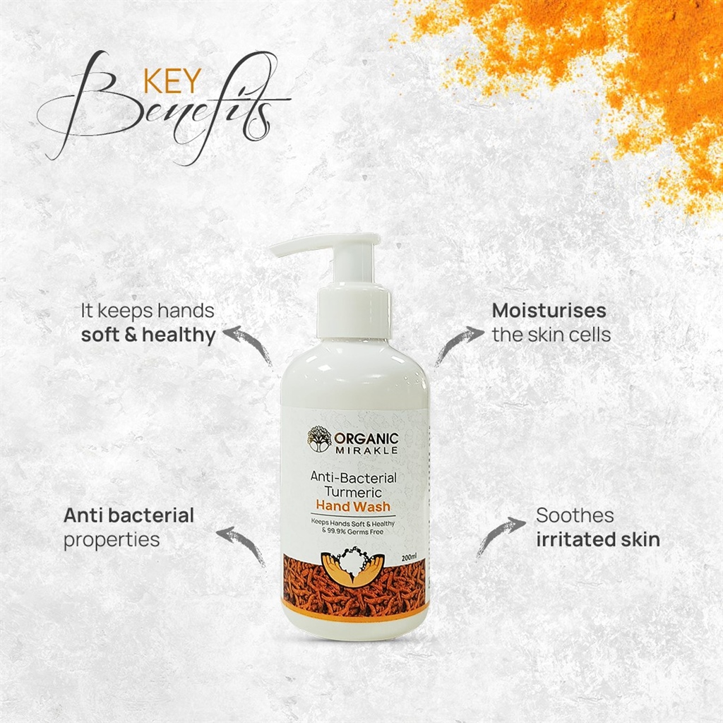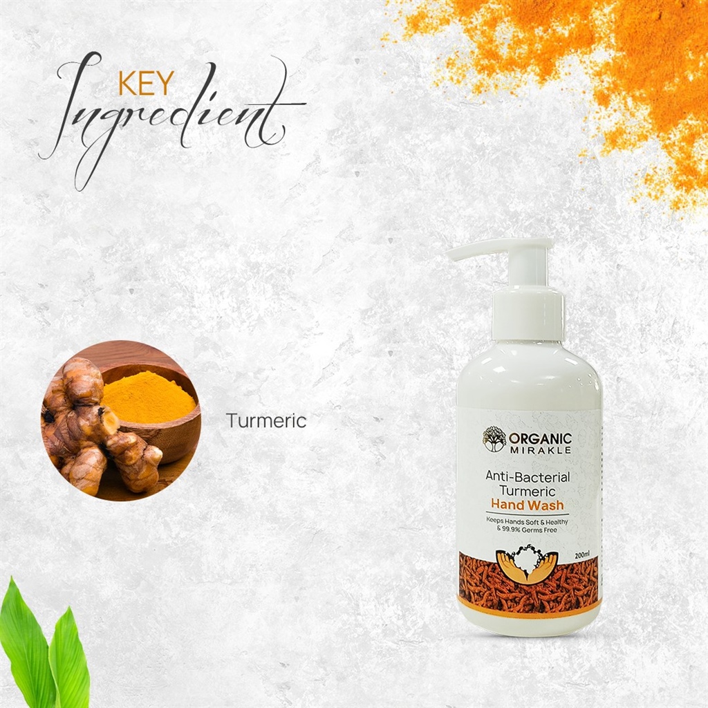 Organic Mirakle Anti-bacterial Turmeric Hand Wash is a hand wash infused with the magical properties of turmeric to detoxify while keeping your palms smooth, protected, and fragrant. One of India’s greatest gifts to the world, turmeric is perfect for any type of skin. Its anti-inflammatory and antioxidant properties ensure your hands are comprehensively cleansed in every way. Turmeric (Haldi) is used for detoxification in ayurveda and is also recognised for its antiseptic and germ-killing capabilities.