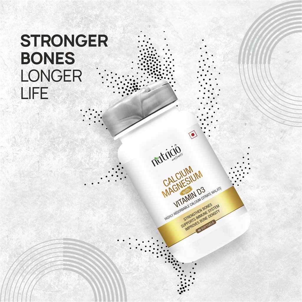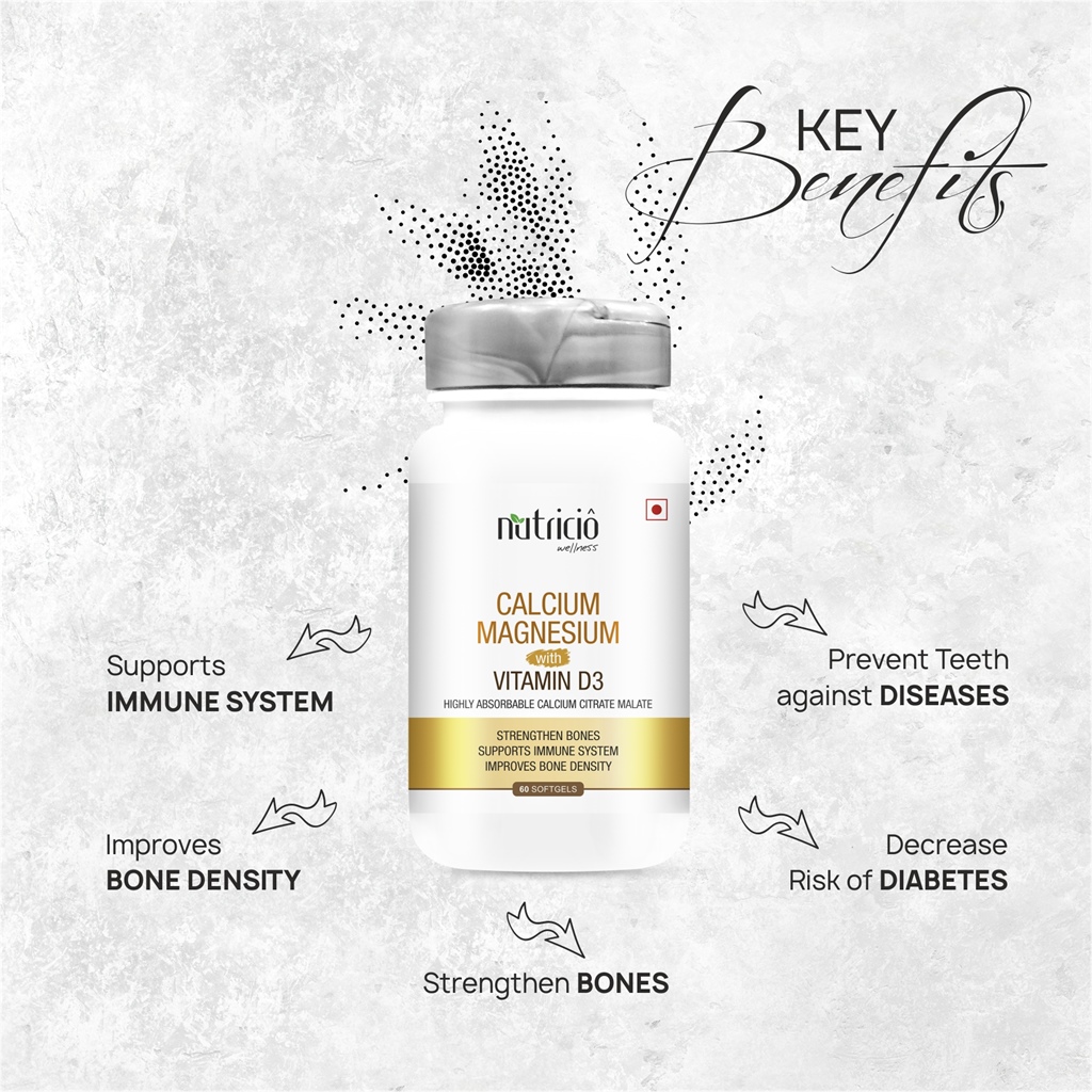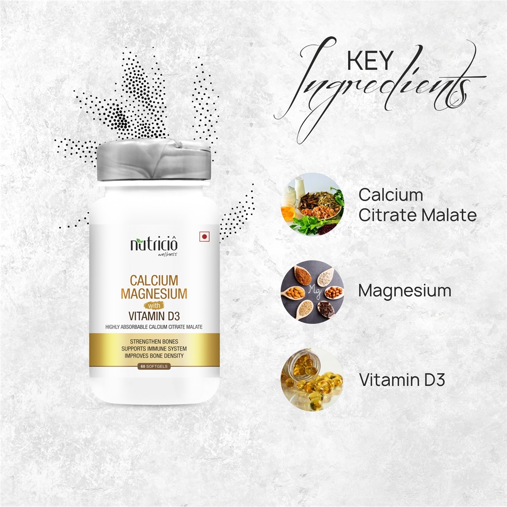 Nutricio Calcium-Magnesium with Vitamin D3 contains rich combination of nutrients to support bones related problems. Ingredients are used after lab test to ensure better result. It has Calcium Citrate Malate with Magnesium which helps in better absorption of calcium, and also helps in proper function of nerves, muscles, and many other parts of the body.
