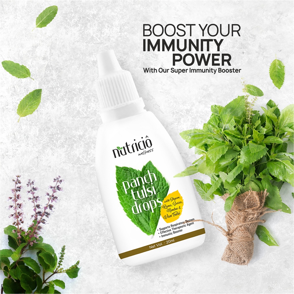 It is one of the best examples of Ayurveda's holistic lifestyle approach to health. Considered as a potent adaptogen, Panch Tulsi and Ginger have a unique combination of pharmacological actions that promote well-being and resilience. This combination increases anti-oxidant molecules such as glutathione and enhancing the activity of anti-oxidant enzymes such as superoxide dismutase and catalase, which protect cellular organelles and membranes by mopping up damaging free radicals caused by lack of oxygen.