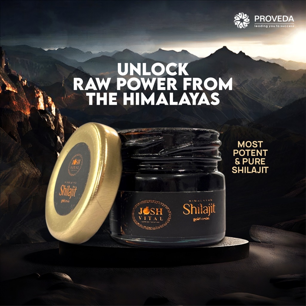Josh Vital Himalayan Shilajit Gold Resin is a premium-grade vitality enhancer formulated using the purest form of Shilajit sourced from the heights of the Himalayas. Infused with the richness of Kesar (Saffron) and Swarna Bhasma (Gold Ash), this gold resin is a powerful Ayurvedic tonic designed to rejuvenate your body, boost stamina, and restore natural strength and vigor.