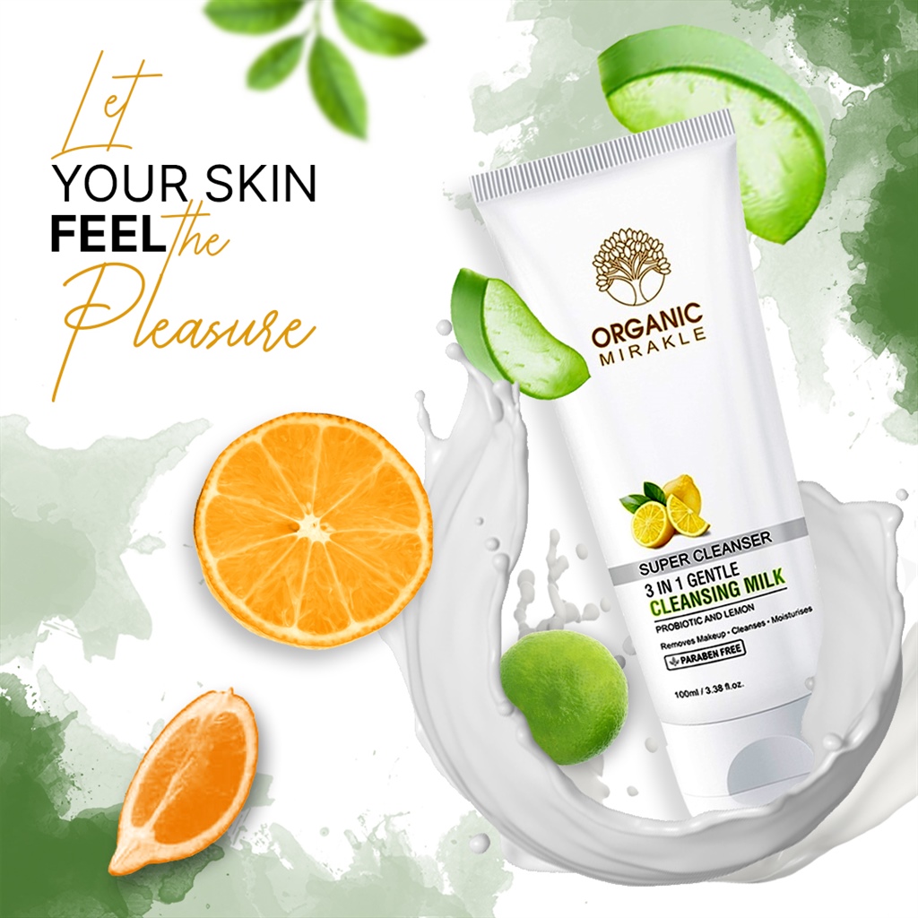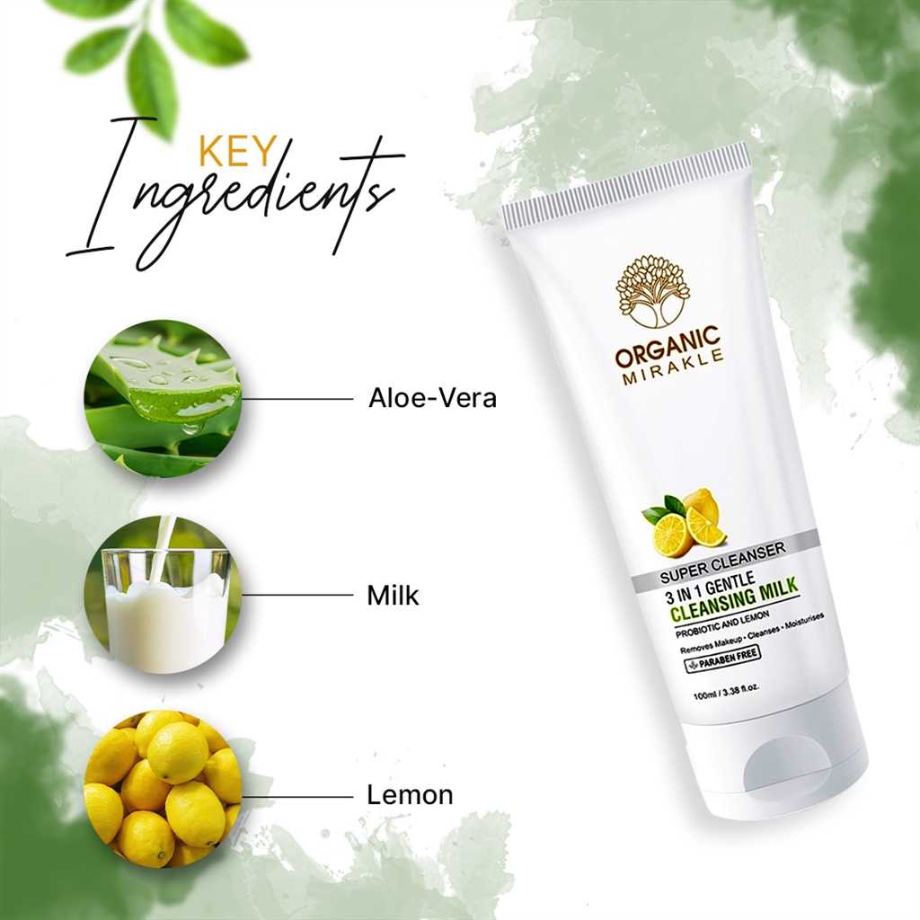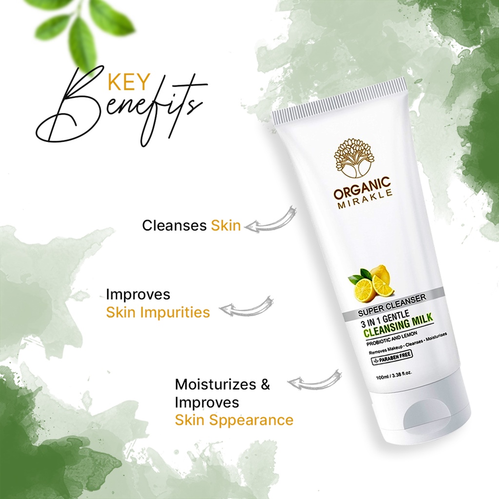 Organic Mirakle 3 in 1 Gentle Cleansing Milk for face yoghurt effectively removes makeup and impurities, while it nourishes and moisturizes the skin, making it soft, radiant and elastic. The cleansing milk contains a combination of yoghurt extract and natural lemon oil. The probiotic extract from the yoghurt is synthesized from Lactobacillus Bulgaricus live bacteria and increases the synthesis of collagen and elastin, improving the over-all appearance of the skin.