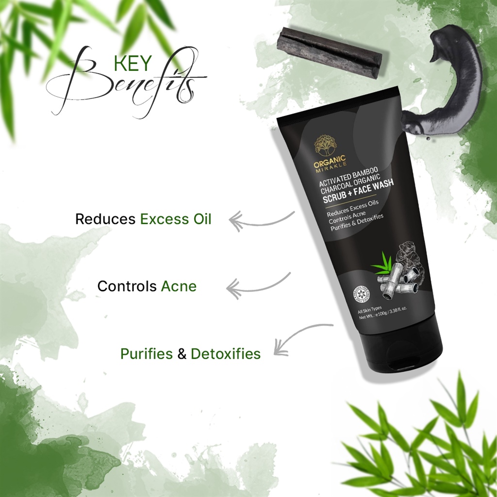 This unique, Organic Mirakle Activated Bamboo Charcoal Organic two-in-one face wash cleanses and exfoliates to remove excess dirt and oil for a refreshed, younger-looking appearance. For a deeper exfoliation, use as a five-minute mask, where the formula will break down the toughest layers of dead skin cells to smooth the appearance of fine lines and improve overall texture.